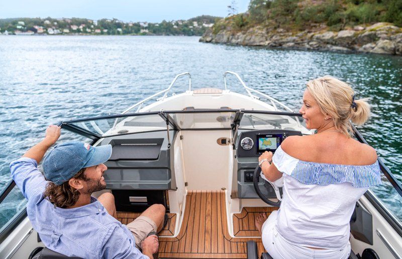 Stikk av på en dagstur eller en weekend på sjøen. Den dype cockpiten om bord i Uttern D70 gjør turen trygg og sikker. Den kraftige vindskjermen beskytter cockpiten mot vind og sjøsprøyt. I kabinen sover dere godt og har fantastisk utsikt gjennom de store vinduene i skrogsidene.