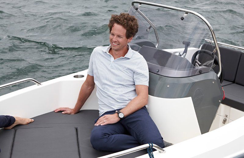 Uttern S59 er en allsidig dagsbåt som passer til både praktiske ærender og moroturer. Midtkonsollen har god plass til å gjemme bort bagasje, matvarer og andre innkjøp, eller en piknik for en hel dag på vannet. Med en lengde på 5,84 meter, kan seks personer sitte komfortabelt i S59. Her har du mange muligheter: ta med partneren din på en romantisk tur, ta med barna eller inviter et par venner. Vil du dra på båttur uansett vær? Legg til spruthetten som tilvalg i oppsettet, så får du et helt omsluttet cockpit-område.